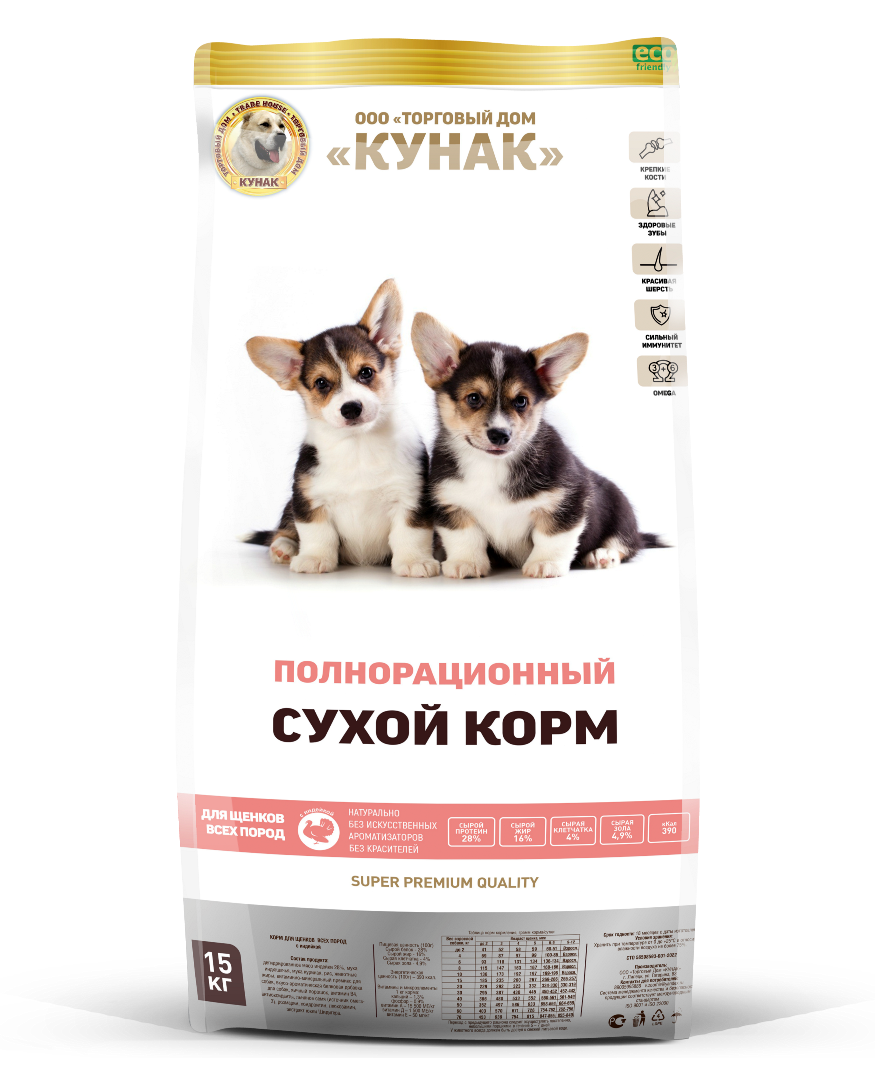 Состав: суточные цыплята, 25% ламинария, 5% лососевое масло.
