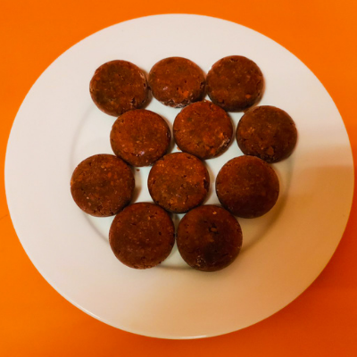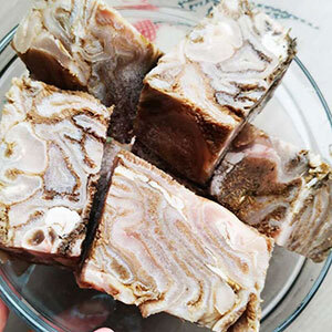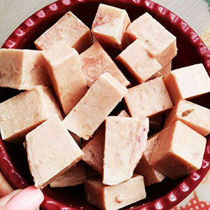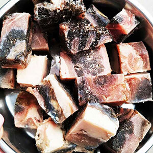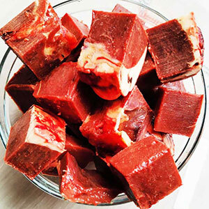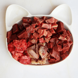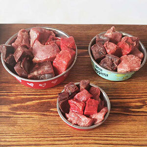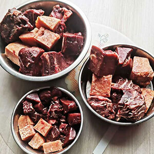 Состав: 70% рубец говяжий, 25% морковь,кабачок, свекла,5% лососевое масло.
