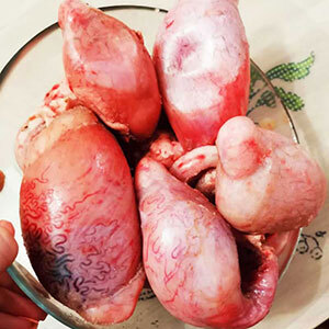Говядина высший сорт 50%, хвост говяжий 25%, бычьи яйца 25%