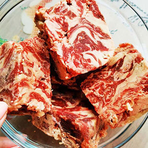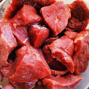 Говядина высший сорт 50%, кадык говяжий 25%, бычий пенис чищ. 25%