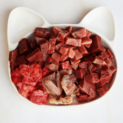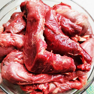 40% говядина 1 сорт, 20% сердце говяжье, 20% язык говяжий, 5 % пищевод говяжий, 15% спинки куриные