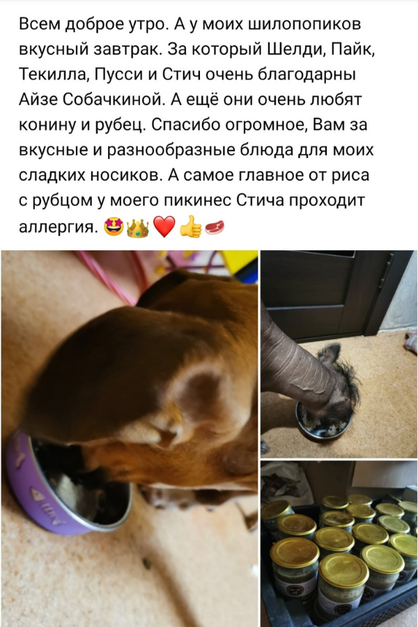 Наши продукты натуральны, безопасны для здоровья питомцев, прошедшие ветеринарные проверки. Никаких антибиотиков, мяса неизвестного происхождения. Мы предлагаем только то, чем кормим своих любимцев. А наши консервы из мяса и рыбы можно есть самим.