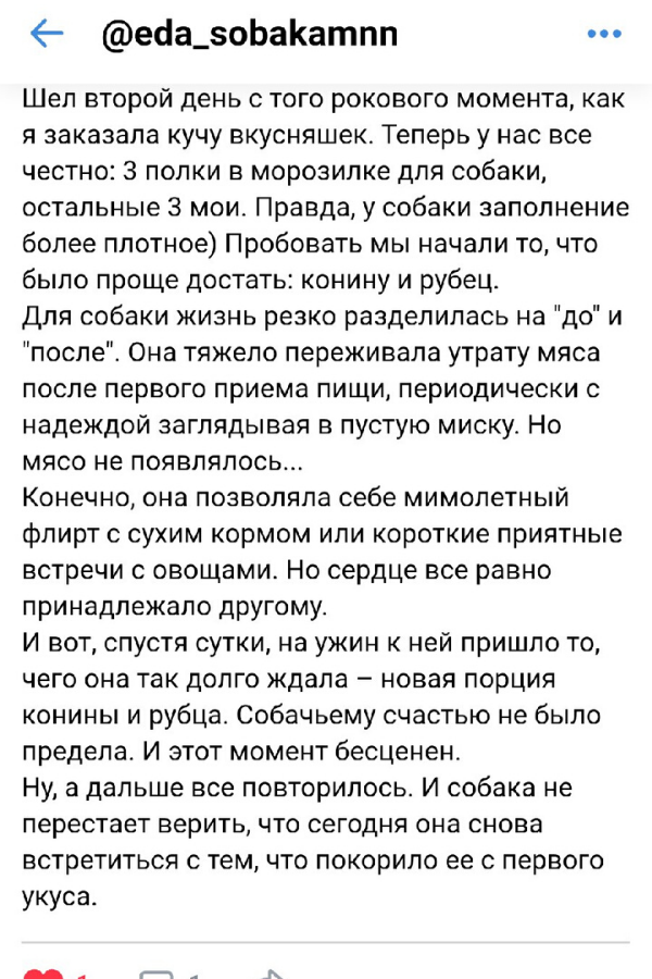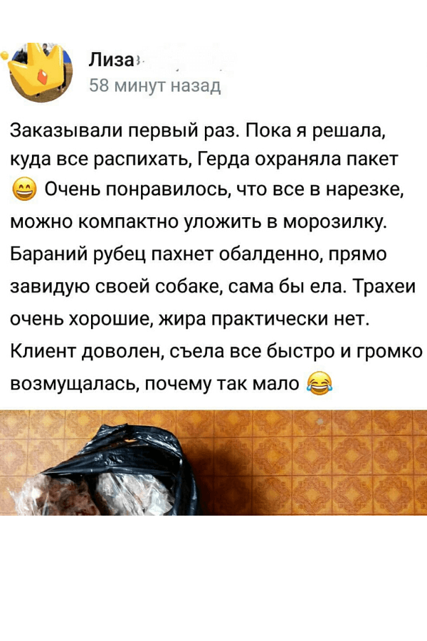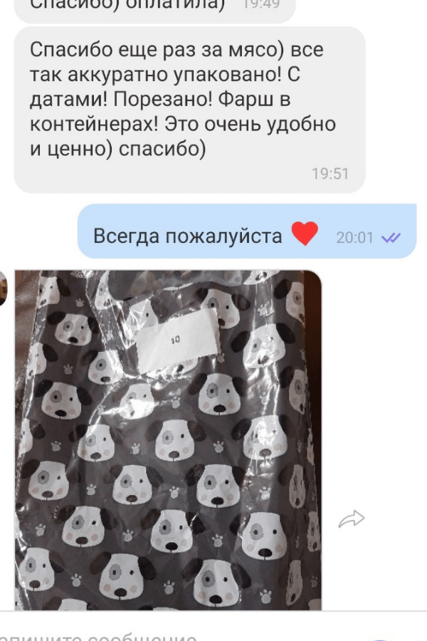 Мы предлагаем разные партии продуктов и прекрасно понимаем, что владельцам маленьких собак не нужны дома десятки килограмм мяса и субпродуктов. Покупайте так, как вам удобно от 2-х кг для удобства хранения. ⠀