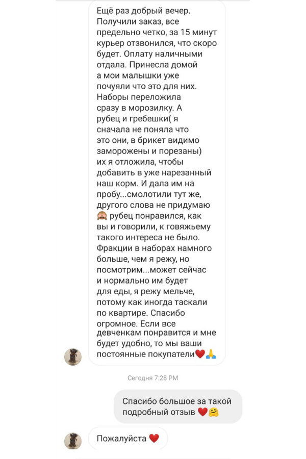 Наша доставка работает 5 дней в неделю, также при заказе от 5000 рублей - мы привезем вам бесплатно. Натуральный и свежий корм для животных по выгодным ценам в Нижнем Новгороде, Кстово, на Бору, Дзержинске, Балахне, Богородске, Сарове ждет Вас. ⠀