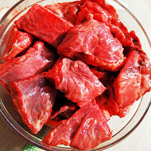 Говядина 1 сорт 50%, говяжий рубец 25%, говяжье сердце 25%